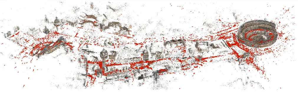 COLMAP: Reconstruction of the area around the Colloseum from lots of tourist photos - Sometimes these estimated cameras aren’t perfect — they may be an infinitesimall unit away from the true camera parameters
